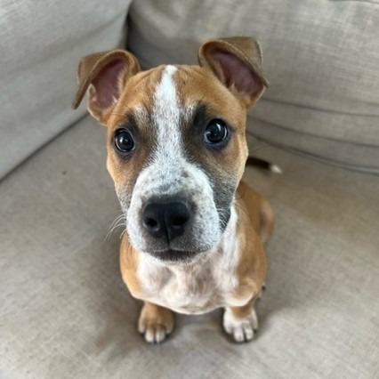 Hi everyone! I'm Nettie. My foster parents describe me as a pocket rocket! I am full of energy and love running around all day. I think I could slot into your family perfectly. A home with kids would be awesome so I can chase them and play all day long! I haven't been tested with children yet but my foster mum thinks I'll be fine. I will need someone who has the patience to train me not to jump up too much - I get really excited and jump around lots but I'm not rough or hurtful. I'm also really cuddly and often curl up on my foster parent's chests or laps for a snuggle and a nap - I'm very cute!!