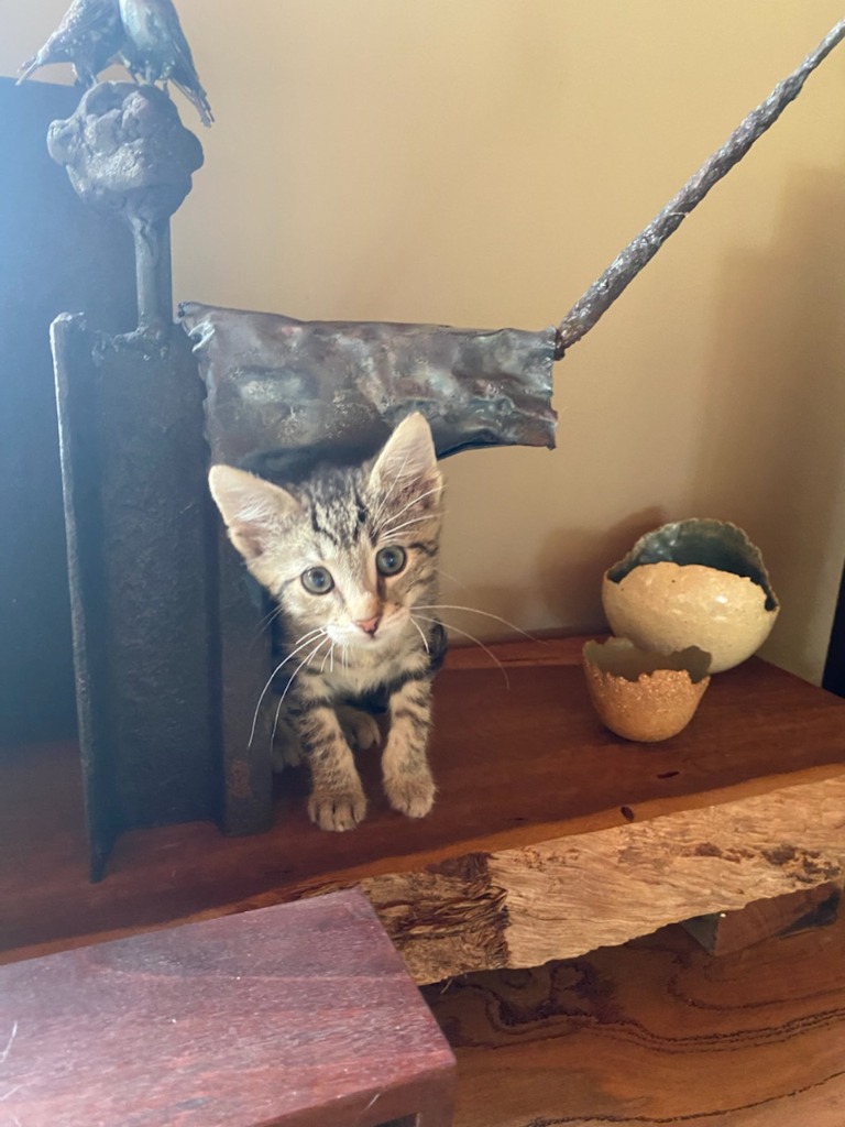 I am Frog. I'm not green, my coat is very shiny and never slimey! I can jump the highest and I give the absolute best kisses out of all my siblings. I hope to kiss a princess one day as I think I would make a marvellous prince! You'll find me most often on our jungle gym showing how frog like I can be while my siblings try keep up with me. I'm a very brave boy who loves adventures and meeting new people because I love to show off just as much as I love to snuggle and give free kisses too. Whether you've a busy home with other animals or a quiet home with none, if you give me a go, I can be the right kitten for you!