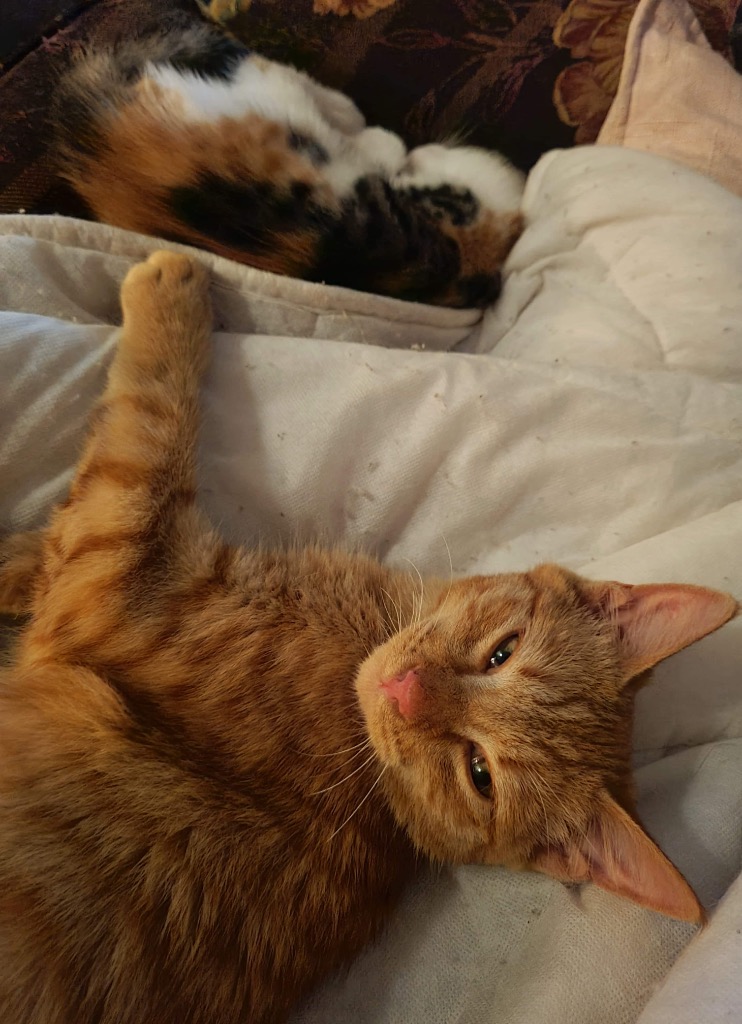 I am very confident and in foster care with 4 kittens and big guy, ginger brother from another mother, Tasman.