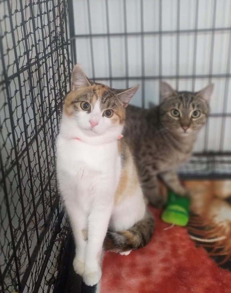 Kirkby (tabby/torti/white) and Ainsty (tabby) are two lovely young girls who have seen all their friends/extended family find homes and are feeling a bit sad about being left behind.