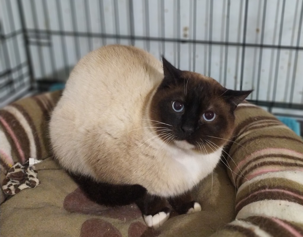 This handsome blue eyed boy is a big chunky bundle of potential. He's made great strides in foster care but has a way to go yet to be the purr-fect pet.