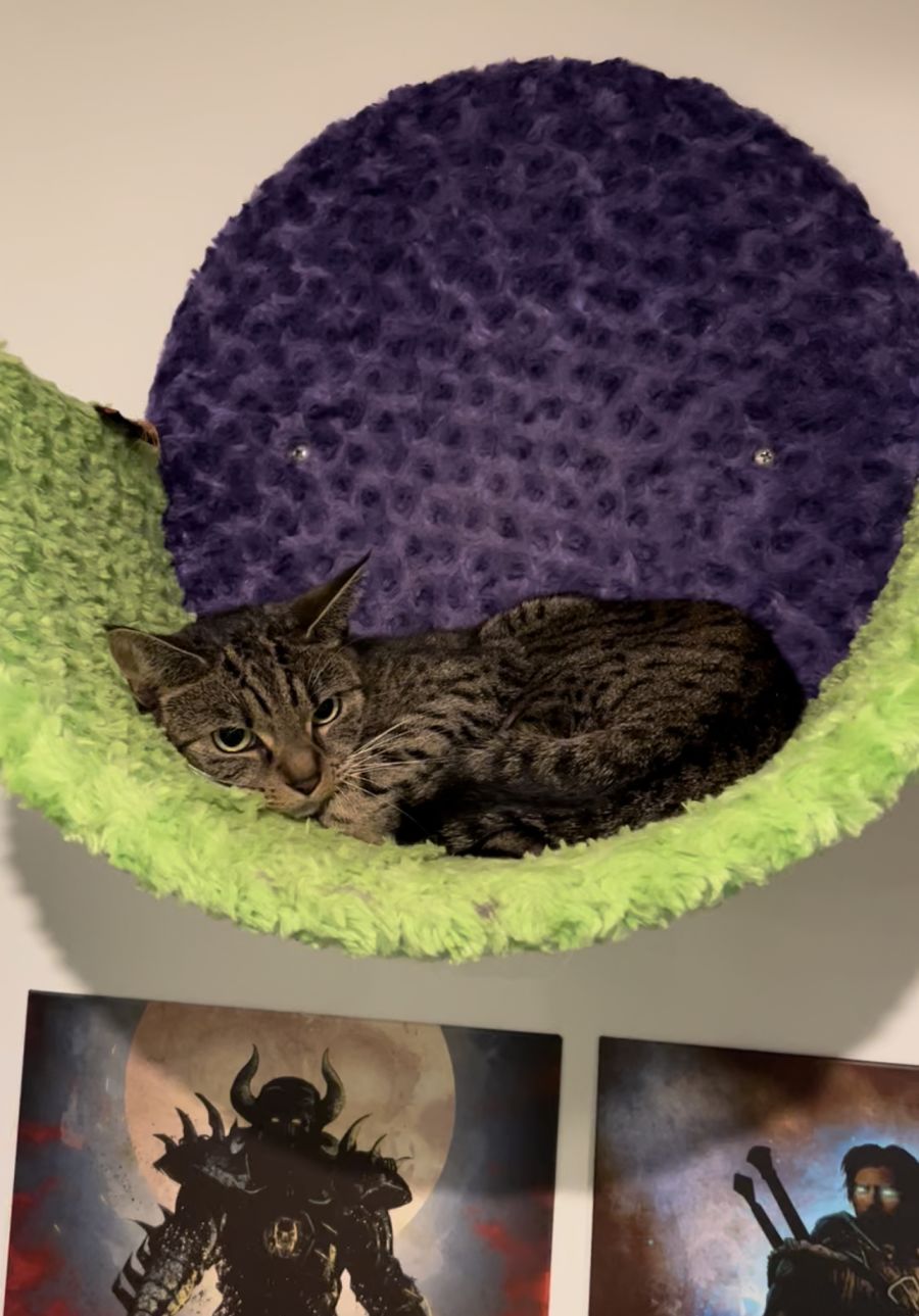 I literally had to pull her out of her crate to encourage her to start being social and was pleasantly surprised to find her inside curled up on our wall cradle this morning watching the world go by.