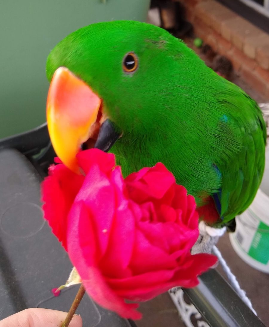 Echo is an ideal parrot for experienced owners. He loves to talk, loves to sing and loves to whistle. He sings along to the radio and makes up his own songs. And he’s a good conversationalist!