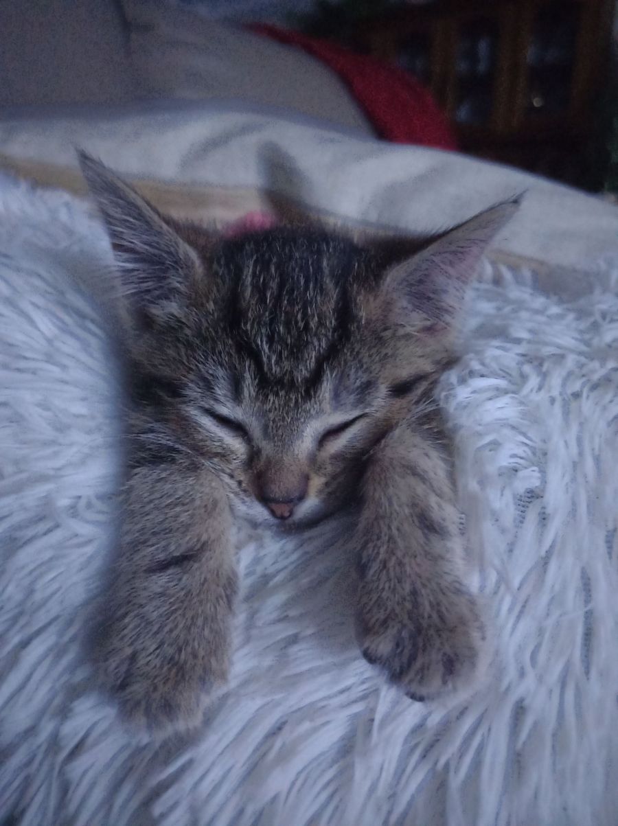 She loves climbing and will try climbing anything yourself included and sleeps on the highest bed closes to the ceiling or in the cubby with her foster sister at night or cold.