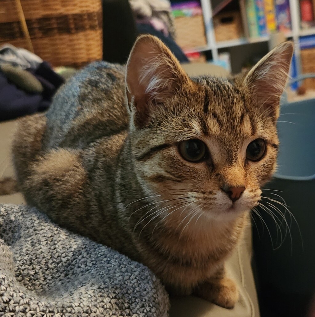 Little Tiger Lily is a pretty tabby girl with a sweet personality. She enjoys quiet times, cuddles and cudddles. An all round great little kitten, she is highly recommended for adoption into a quieter household.