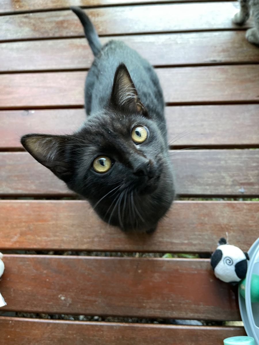 Tucker was found in a families front yard alongside his two siblings Tillie (adopted) and Tate (up for adoption). While they were quite scared at first, it didn’t take long for them to start purring. This leads us to believe they were dumped. Tucker is now approximately 16 weeks old. He is beautiful boy in both appearance and nature. We think he has a hint of shadow tabby as in the sun you can see streaks of brown tabby markings through his coat. Tucker is very affectionate and loves to play and cuddle. He is the first to greet his humans and show off his head bumps. He will sleep in your lap when given the chance and roll over for belly rubs. His absolute favourite toys are anything that dangles. Tucker has been raised around cats and dogs who he has no issues with. He quite enjoys the company of his siblings. Tucker would be a great addition to any family environment.