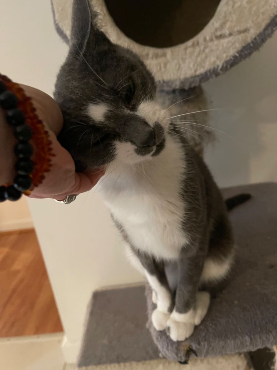 She doesn’t mind being in a home with dogs or children, in fact she has taken a very big liking to the foster carers children and loves to play meow when the children make a meow noise she will meow back at them and head bump their hands when they put them out to her. She would be prefer a home as the only cat and will tolerate other cats that let her do her own thing. However her ideal home is without another cat and would happily share the home with a dog with a gentle introduction. Matilda would suit a home with children, a working family or a single person! As long as you want love and affection, willing to give in return she is the purrfect addition to your family.