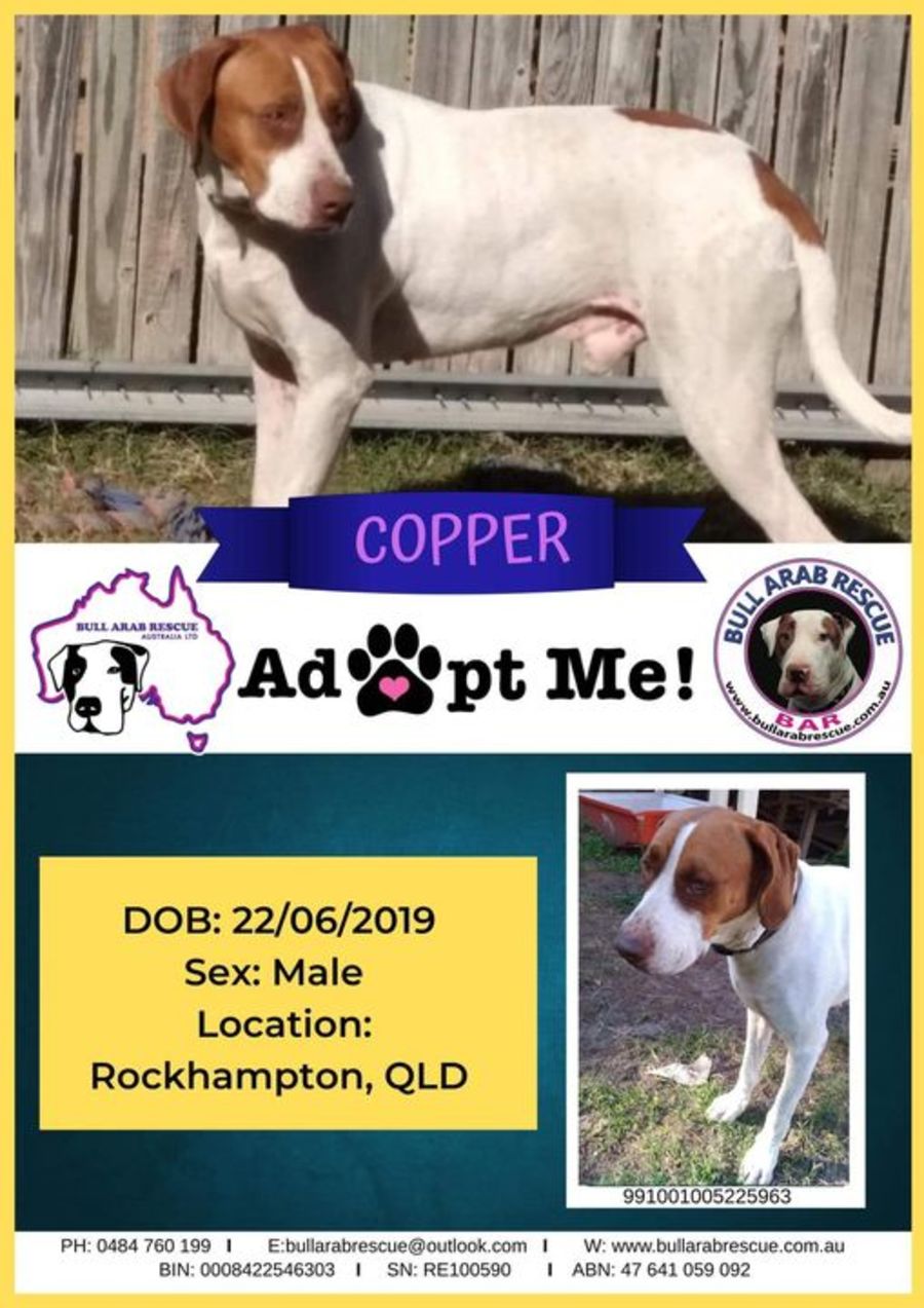 Copper is currently located in Rockhampton, QLD. He can be transported Australia wide