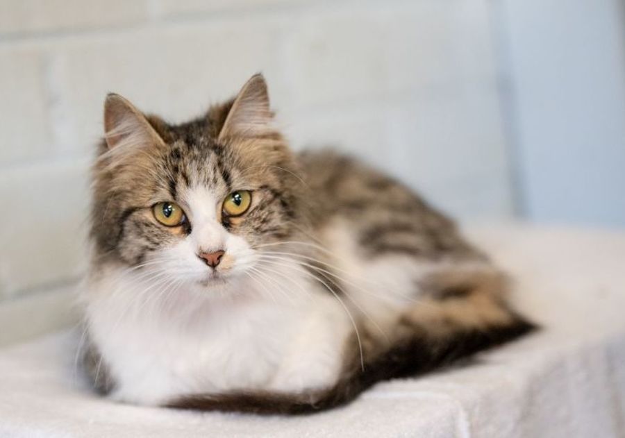 Purrsephone is the cutest, friendliest, cuddliest, fluffiest little darling you could hope to meet. She is a total lap cat who loves being picked up and held like a baby and getting kisses on her adorable little head.