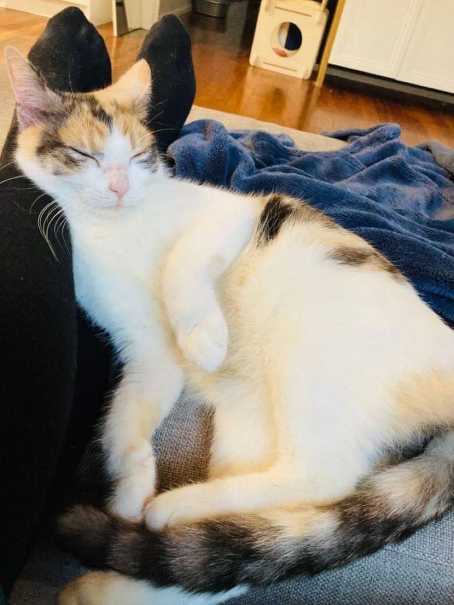 She is a rare treat - a beautiful soft, cuddly girl that loves a belly rub and a good lap cuddle. Her favourite place to be is on the couch, in a lap, with her head tucked under and belly out.