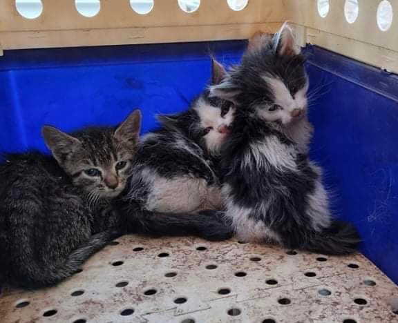 These guys made themselves known to a family who were out gardening - these guys casually walked out of the Darden shed looking for assistance. Very cute kittens who love the adult resident cat and beginning to play with kitty toys. Wrestling one another is a favourite past time.