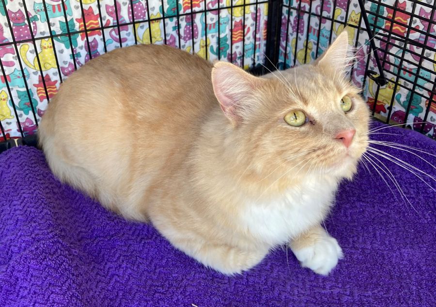 C1098 Harry is a big friendly champagne ginger cat and is 5 years young. He likes nothing more than a pat and a chat and has a magnificent medium length floofy coat! Harry likes company and will happily accept your love and attention or have a snooze if you are out or busy. He would be a great addition to any household without young children (they startle him, and he may not have patience with kids). Harry is fantastic with his litter tray and should adapt to other animals in his home, the two-week trial will allow you time to ensure everything works well with ALL family members (two legged and four)