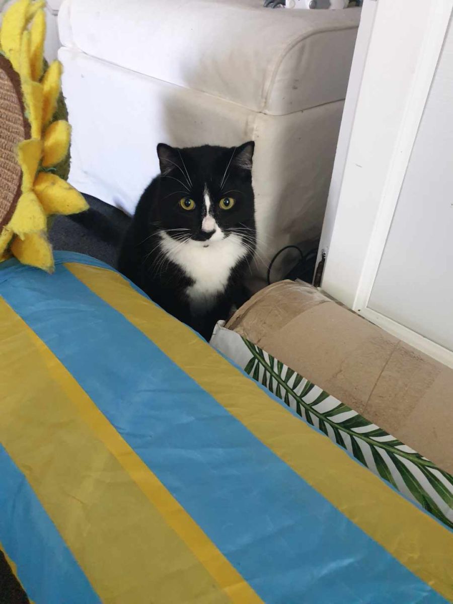 Max is a playful and confident young man. Loves to follow you around stickybeaking at what ever you are doing. He loves food! Loves pats and cuddles,even showing you his belly for rubs. Snuggles on your bed at night time. Great with other cats. Would be perfect with another energetic cat or on his own as he's quite a confident boy.