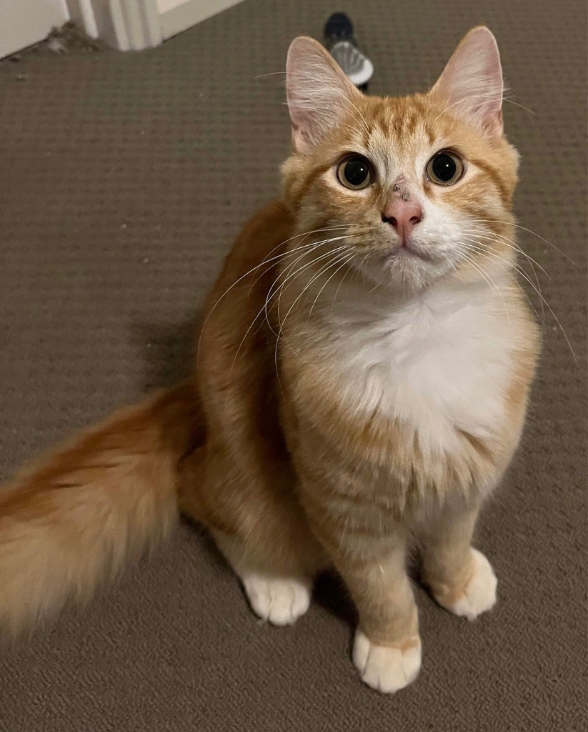 Meow - my name is Alani. Alani is Hawaiian for orange. I am a handsome boy who after a week hiding behind my carers washing machine; have ventured out for attention, pats and toys. I have one heck of a stunning raccoon tail; and my carer said I have the biggest kitty toes he has ever seen - and he has fostered some big Tom's before me! I have a couple of scans on my nose that are healing - they're not ringworm - but I injured myself in the pound against the cage door. I was taken to the vets as I had a blood nose - but was given the all ok. I was absolutely covered with fleas - but have also been treated and now flea free! My adoption fee will cover my booster vaccination, worming, chipping and desexing surgery. Experiences with children and other animals are unknown; due to my shy nature and dislike of loud noises - an adult carer and home will be favourable.