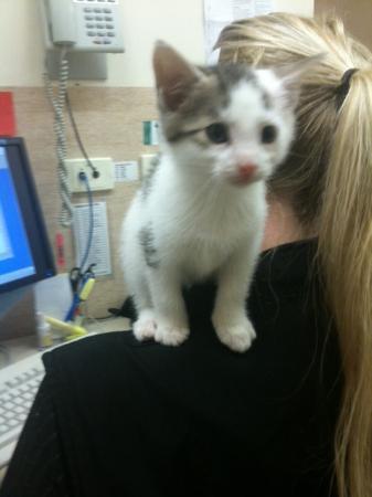 Meet little justin! he is a domestic short hair kitten. He is white and tabby. Justin was surrenderd into stud park vet with his sister. He is a bubbly little character and loves to play with his toys and his sister. He is also a little chatterbox and if he isn't eating, sleeping or playing, he's talking. He has a very soft and patient temprement so would suit any home. Adopting justin does come with a fee which is to cover the following services. F4 and fiv vaccinations x 3