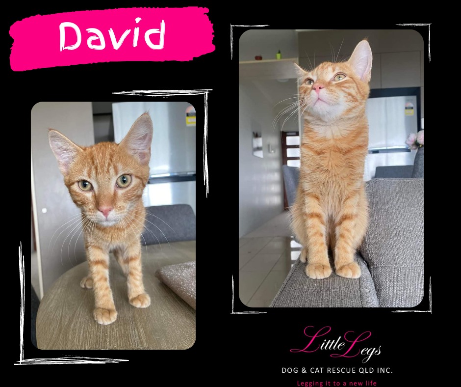 Hi, I'm David. I am a very, very sweet boy who loves to cuddle on your lap, get pats and wander around the house and sniff everything. I am VERY calm natured, enjoy a play with my cat toy but really enjoy relaxing. I am great with my litter box and like to keep myself very clean. I am great with other cats and don't mind being around dogs at all.