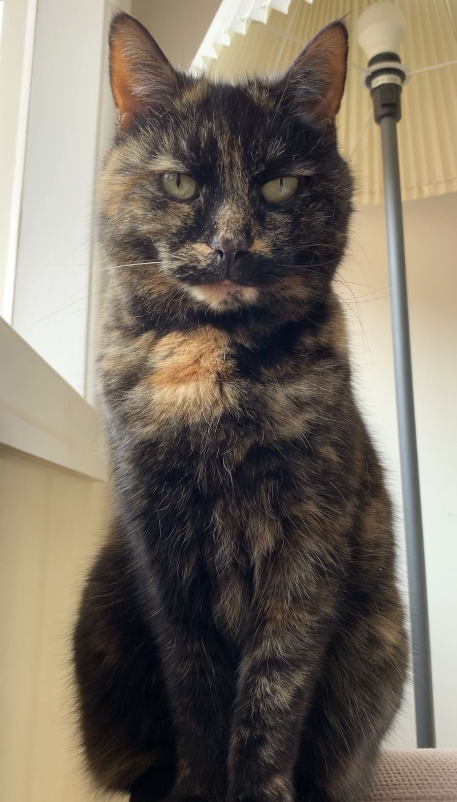This absolute sweetheart is exceptionally polite. Before cuddling up on your lap, she asks permission by getting as close as possible to your lap but without stepping on it. Then she sits and waits or puts one paw gently on your thigh and waits. If you tap your thighs or place your hand on her back, she’ll jump on.