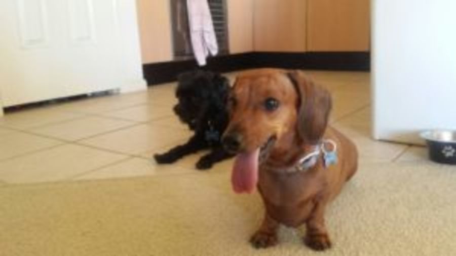 Penny, a miniature dachshund and Henry , a Poodle x Shi Tzu are an odd, but delightful couple. Penny is the boss and true to the breed, can be pushy in order to get her needs met. As Henry is happy go lucky by nature and a gentleman, he will readily fall into line. He embraces the mantra ‘happy wife, happy life’. Penny is an affectionate and loyal girl who loves to be by your side or better still, resting on a comfortable lap. Penny is less endearing when she finds a small object to chew, such as plastic pegs. The pair will bark at other dogs or bikes passing by but overall are well behaved little companions.