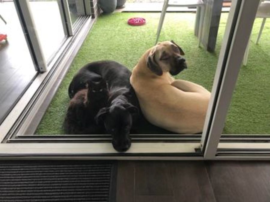 Penny is a gentle sweet 4 year old Great Dane x . She loves human company and other dogs and one of her best friends is a cat