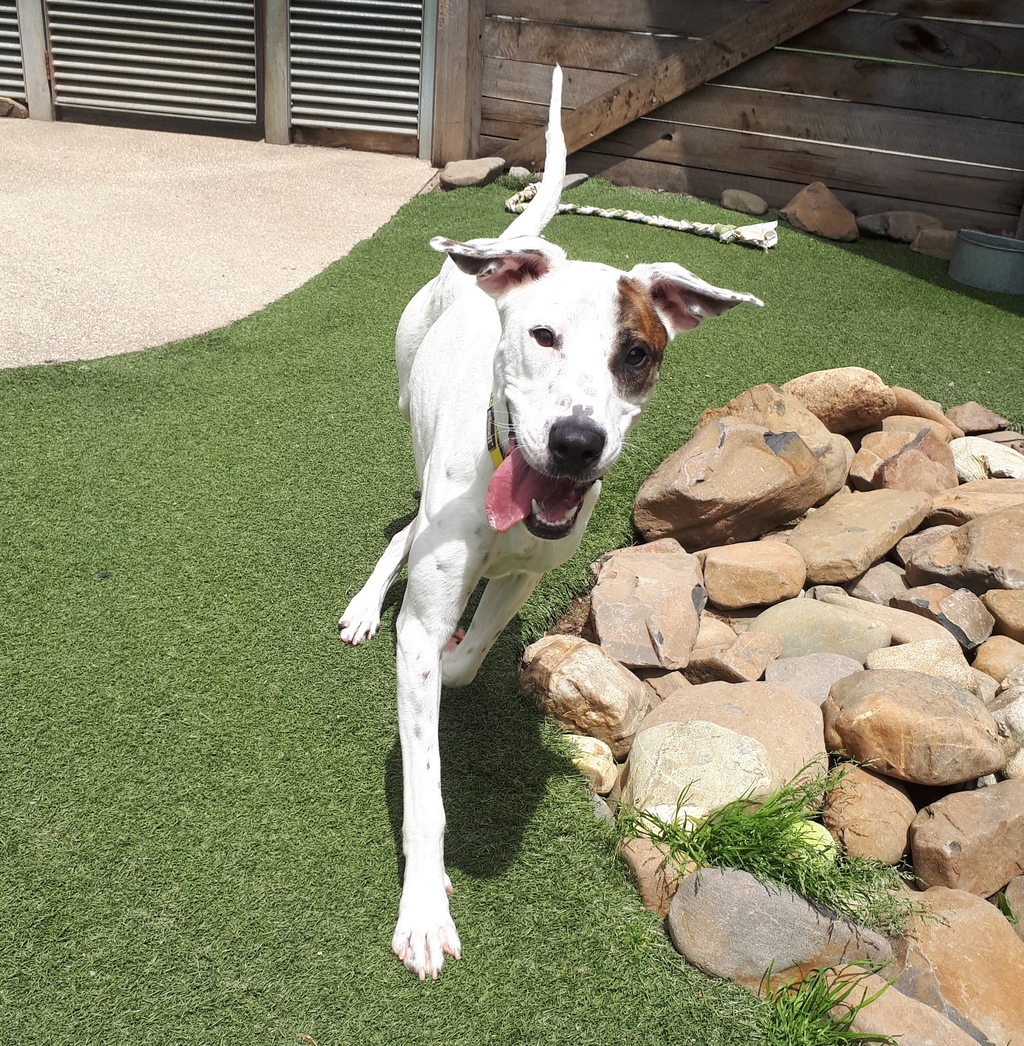 Opal is a big bouncy girl with gorgeous brown eyes. She has a lot of energy so would love a big outdoor area to run around in! Opal may be best suited to an adult only home with no other animals. Opal can be a little shy at first, but is a super sweet girl who will thrive in a home environment where there's lots of love on offer!