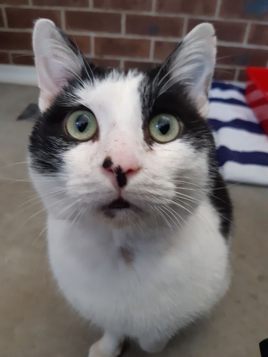 As you can see, Panda really wanted to say hello to the camera. Panda is very affectionate young man looking for a home of his own. As Panda is FIV positive, he will need to be an indoor cat, with access to the outdoors through walks on a harness, or an enclosed cat run. If you would like to meet Panda, please call our office on 9722 1265 to make an appointment.