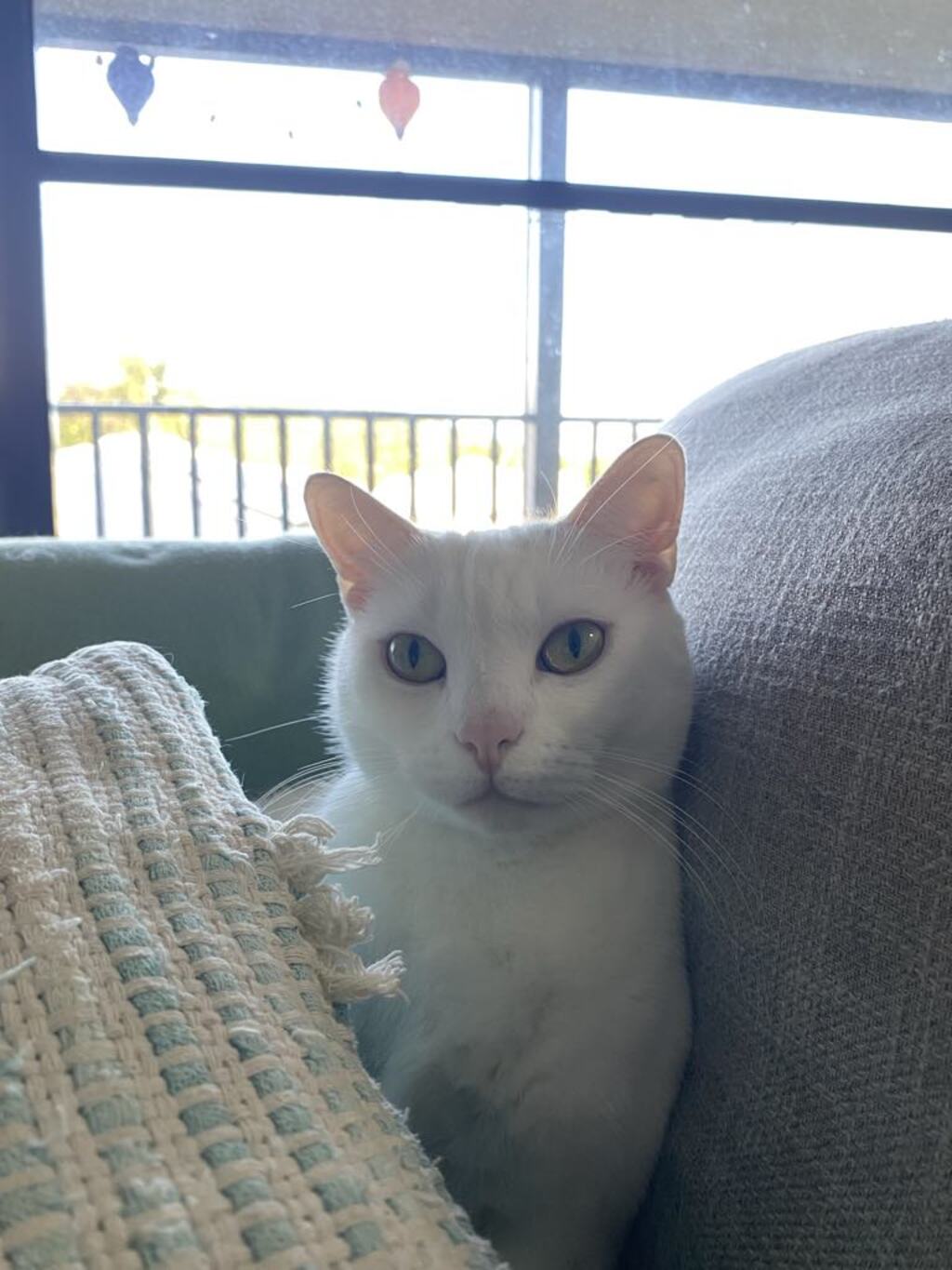 Hello, I'm Snowy. I'm a bit shy, but once I get to know you, I'll be your best friend. I love quiet afternoons and soft whispers of affection. I'm gentle, so I'm perfect for a peaceful home. I might hide when we first meet, but give me time. I'll soon be purring in your lap, sharing sweet moments. I'm friendly, too. I get along well with others, so if you have other pets, we'll be pals. Why should you adopt me? Because I'll bring warmth and love to your home. I'm waiting for you.