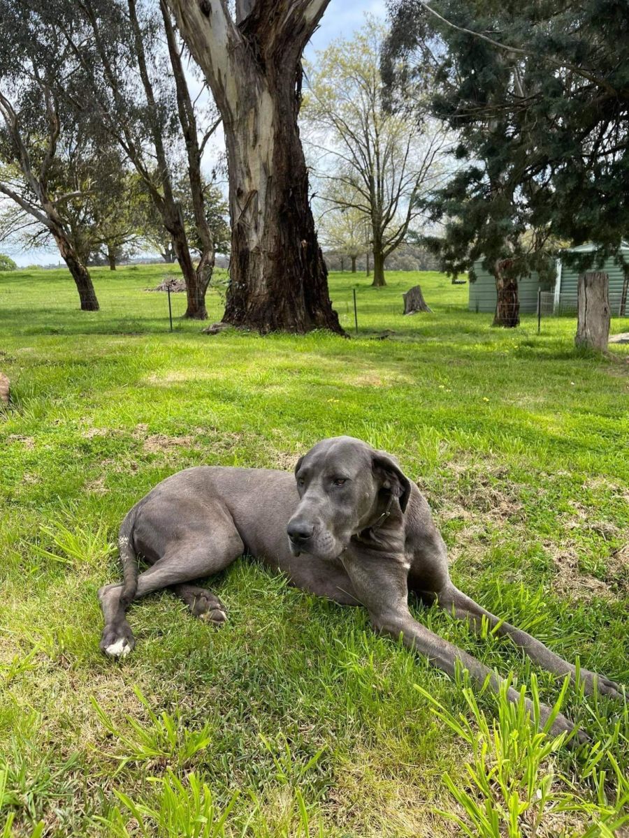 She normally ambles about on the farm with chickens Guinea fowl other pooches and loves the poddy calves.