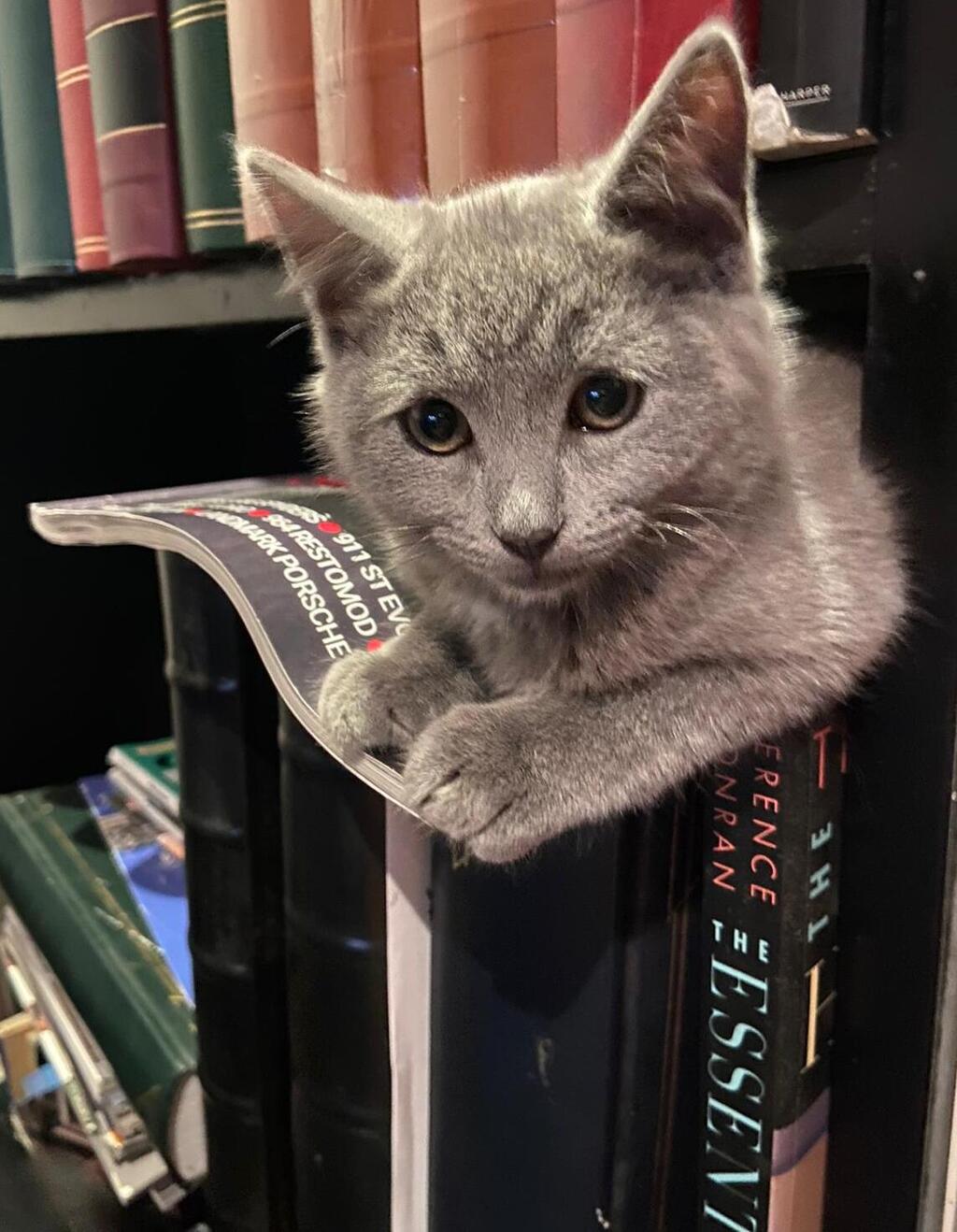 Pugsy loves to play, cuddle and do normal kitten activities (including jumping on shoulders).