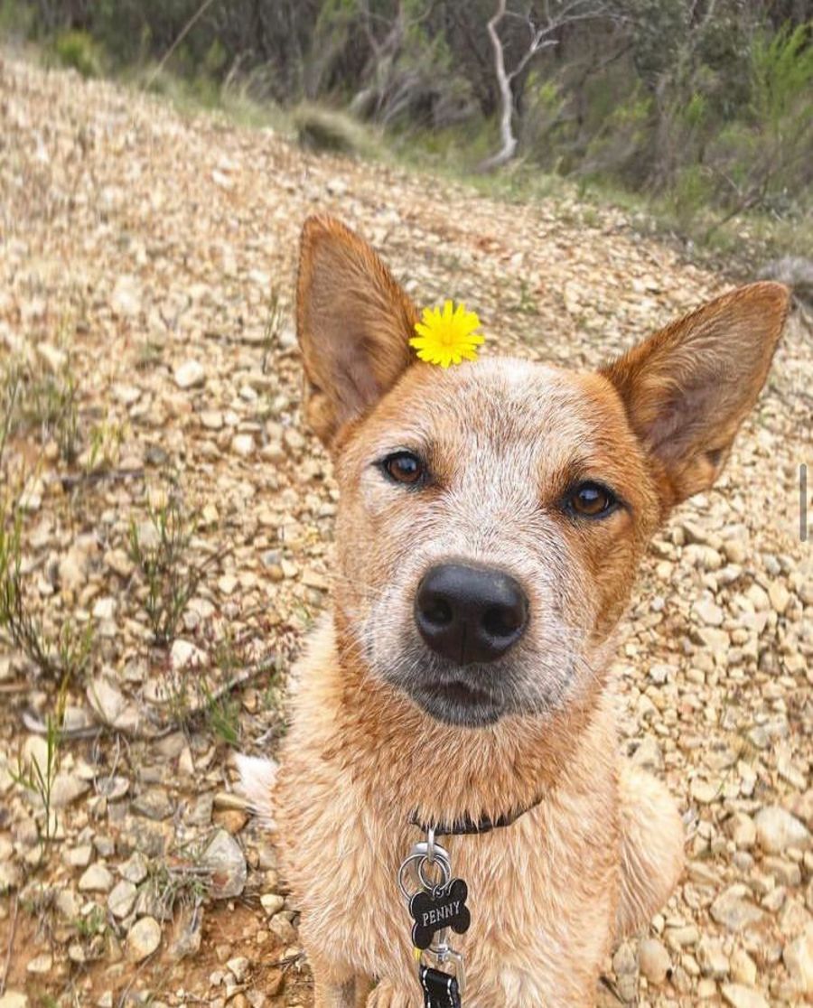 Penny also loves bushwalking and playing fetch in the water. She is still learning her recall skill off-leash but is making great progress. Out and about on-leash, Penny can sometimes be a bit cautious of new things/situations and can be protective of her pack, but once again, she is a young dog still learning how to be her best self and will look to you to guide her with positivity and love.