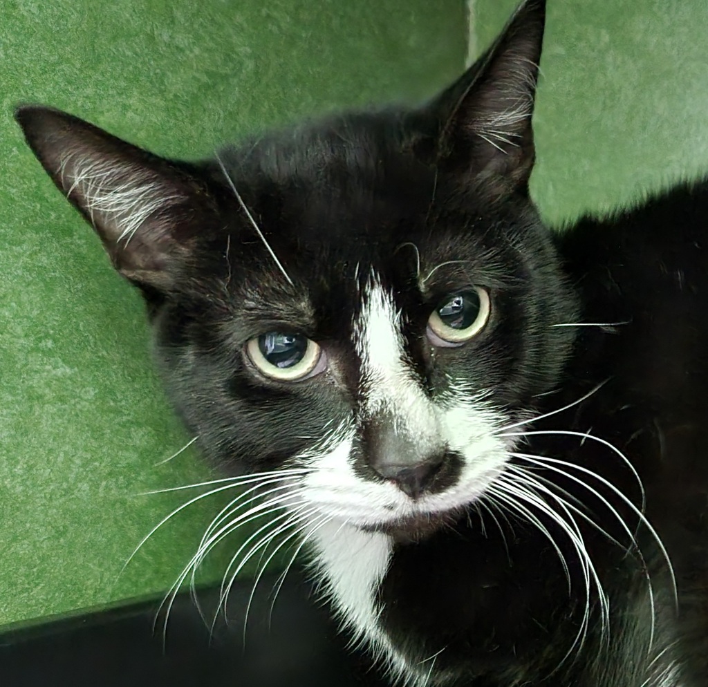 Anchovy is a lovely friendly cat, but just a bit overwhelmed here in the shelter. When it comes to relationships, Anchovy does not always leap in paws first but if you give him a little time to get to know you, he will shower you with purrs, head-butts, and plenty of lap time. He could be okay living with a friendly cat for company. He is simply an easy going kind of guy whose hobbies include eating, sleeping and snuggling.