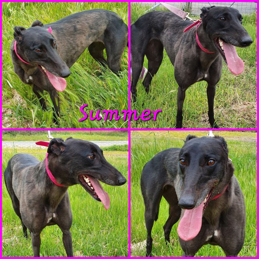 Summer our ex-racing Greyhound is ready to find a home she can be a couch potato and have daily zoomies.