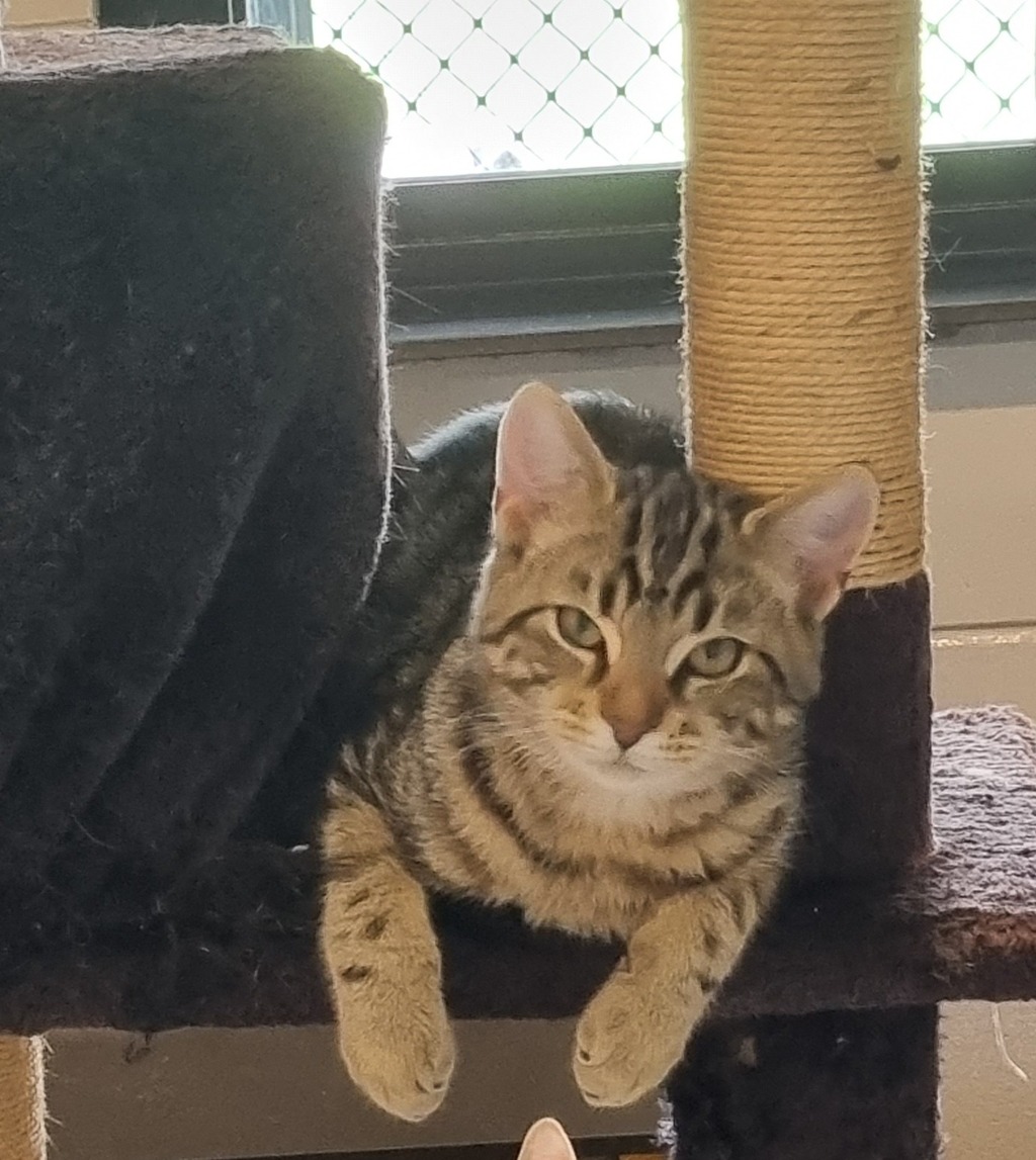 A playful young chap with a go get em attitude to life! I'm energetic and love to run a muck with my toys! I do also love some downtime, after the playing is done of course. I would be fine to go home with another social, playful cat... I mean then they can play with me!