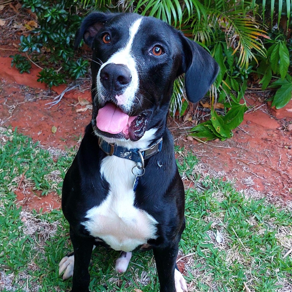 This beautiful boy will need a human that can continue consistent lead training and manage a strong inquisitive doggo. Diesel will bark appropriately if strangers walk pass the home, he is an intuitive protector of his humans. Diesel would do well with his humans working part time or home intermittently throughout the day. A secure yard is also required for when you're away. He is a smart boy that yearns companionship, love and mental stimulation. He could easily live with another dog similar size or smaller, but has not so far been cat tested. Diesel absolutely loves children and even though he does not jump up he can be awkward and ungainly. He would be suitable in a family with children over 8 that were dog savvy and supervised by adults to foster a respectful relationship. He could also live with a couple or a single person that could give him the attention he needs.