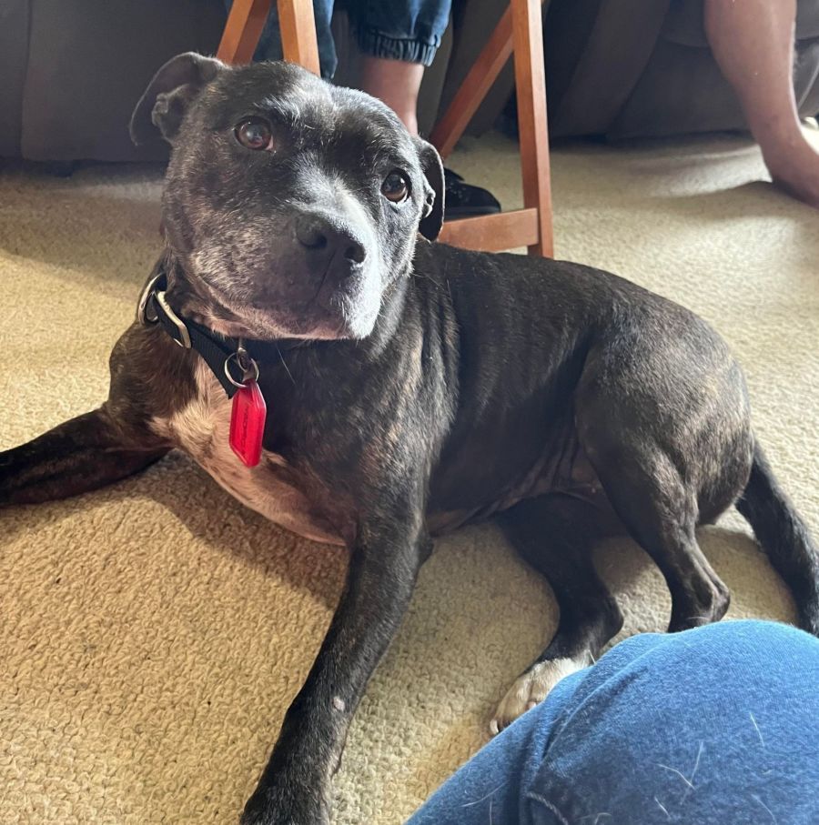 Nyssa is a 9 year old english staffy looking for a new home due to the rental crisis. Nyssa's owner had to move as his landlord decided to sell the house. Finding another rental where he could take Nyssa was impossible