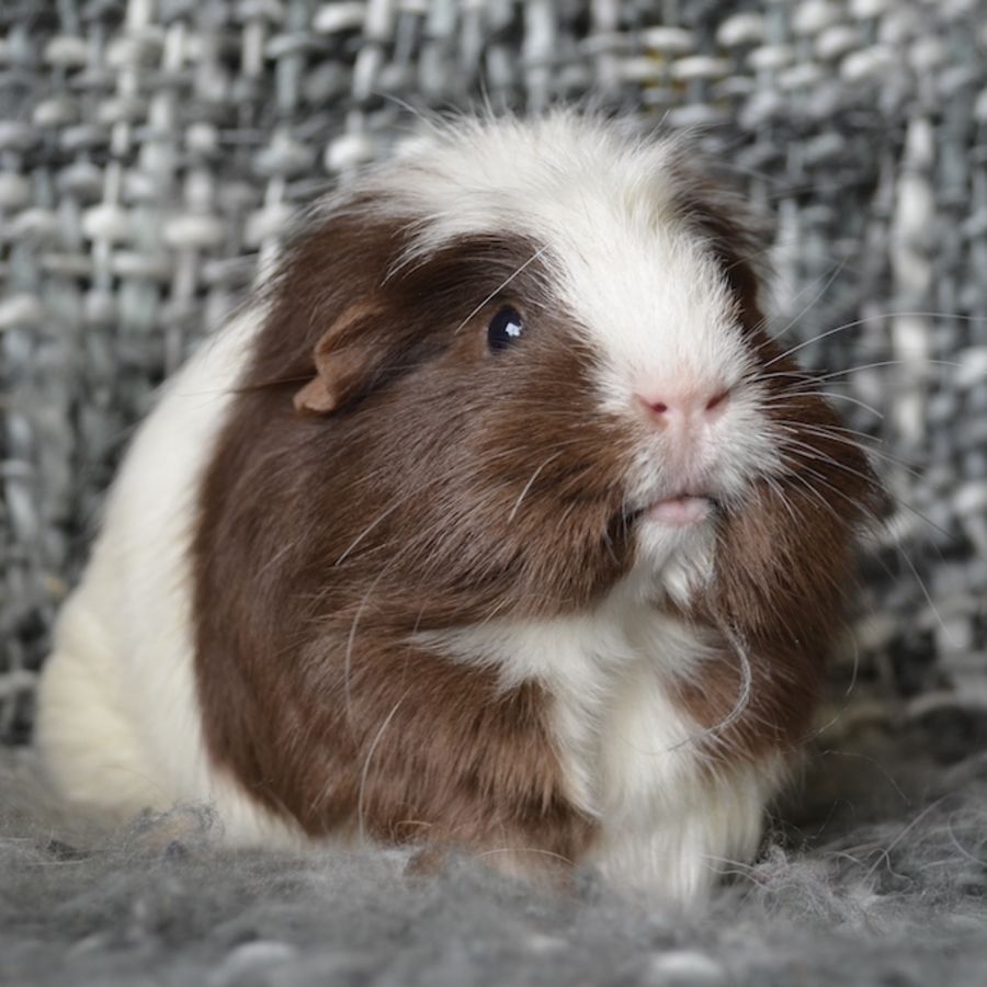 Tiramisu is another of the 30 guinea pigs dumped overnight at a pound. She was very sick, very scared, and has come such a long way from that poor girl. Tiramisu is now always squeaking her head off for more food, runs over to take it from us, and mingles well with all the other piggies. She deserves a special home that will not neglect her nutrition again, and give her all the love she needs.