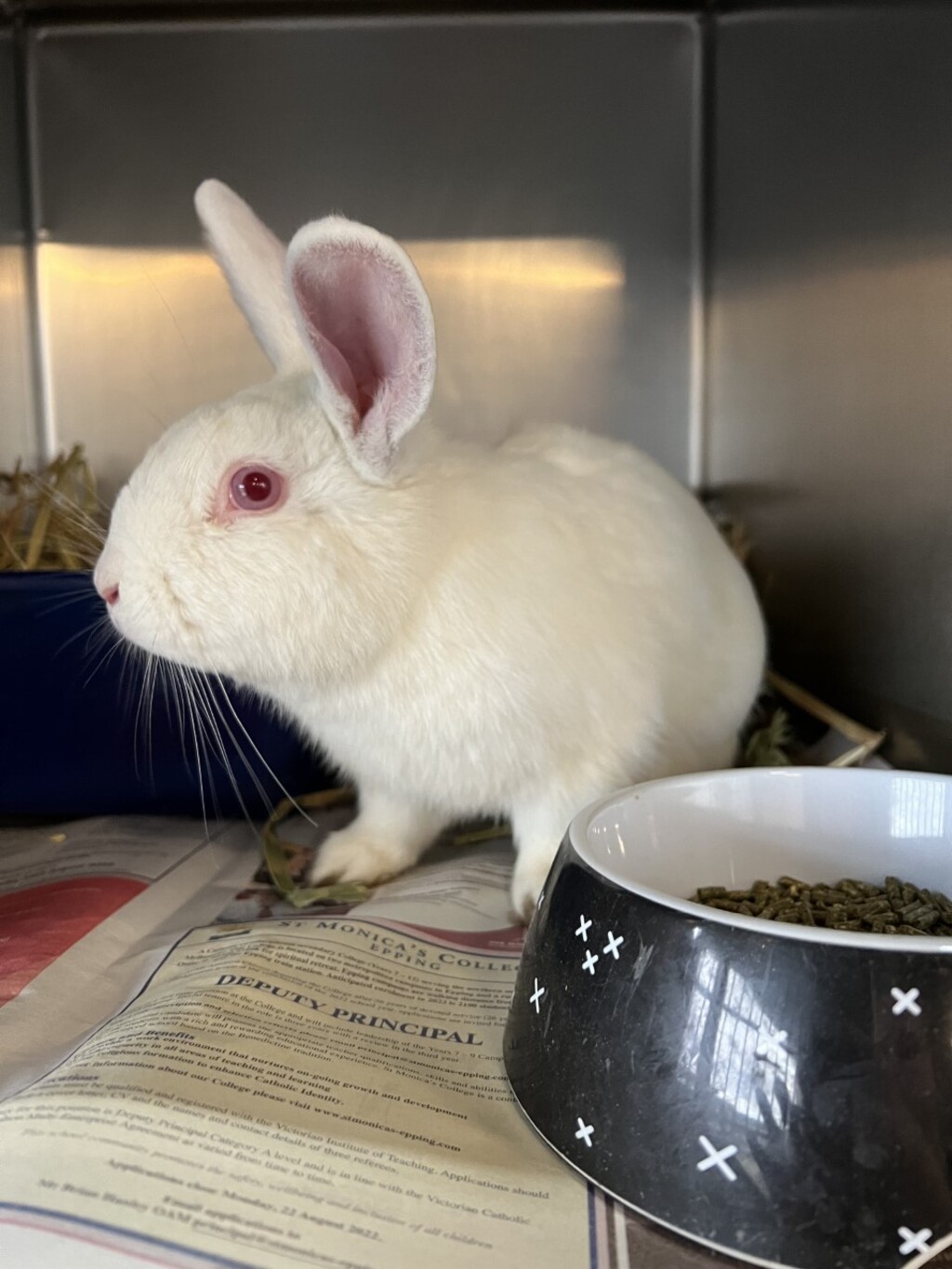 Kevin is looking for a home where he can roam around indoors with his family, with a bit supervised outside time when the weather is suitable. Kevin is a quiet bun, and like most rabbits he is a bit shy at first. Once he feels comfortable and a beloved member of your family, his personality will shine through!
