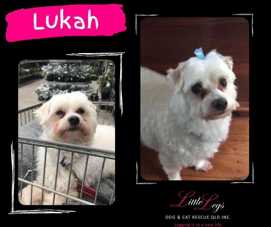 Lukah is a lovable little Maltese x Poodle. He didn't receive a lot of training in his early years however has shown some good progress with his foster mum. He would love a home where there is someone home most of the time or only away for short periods during the day. He would prefer a home where he can share his human's bed.