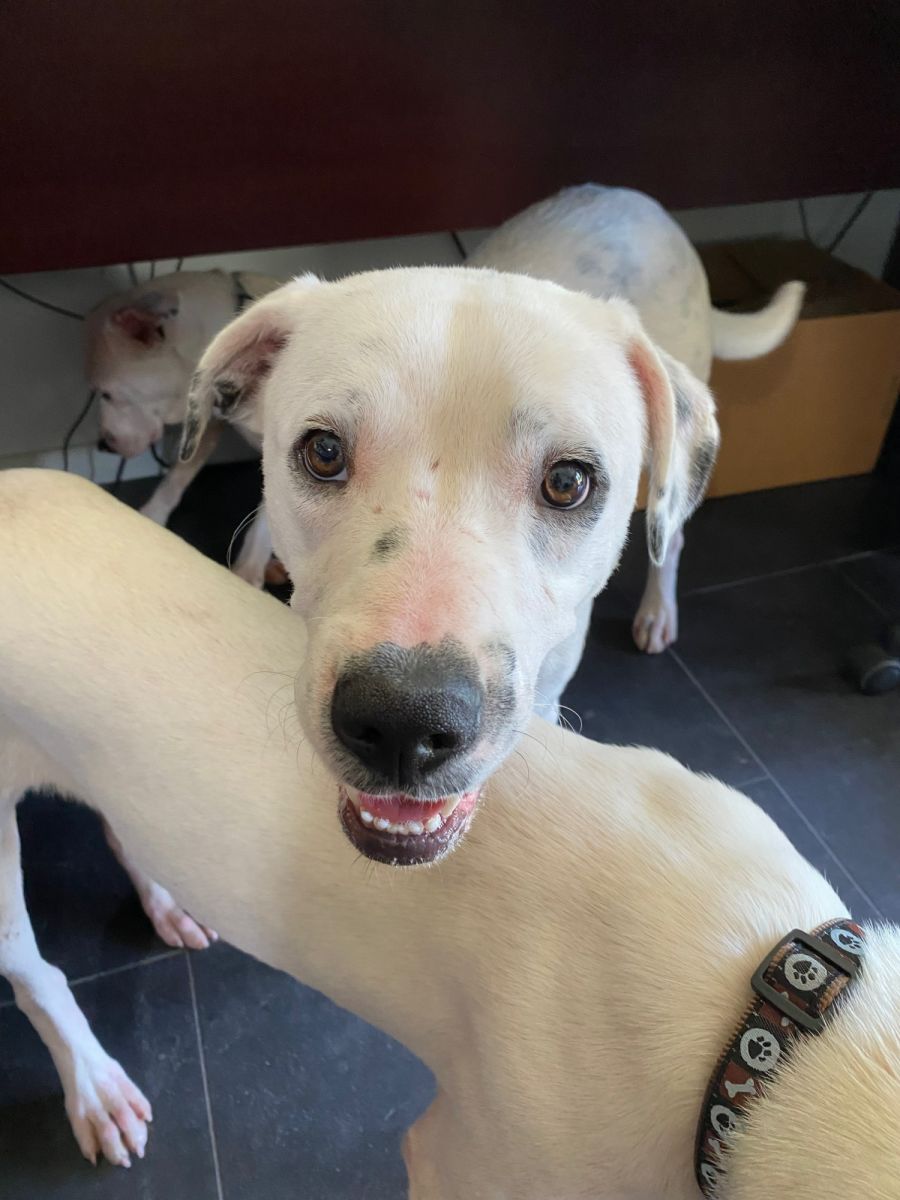 D803 Sonny is a 6 mth old bull arab cross / mixed breed male dog who came into care with his 5 brothers and sister via the pound. He is a little shy overall, but extremely cuddly once he has gained his confidence. He walks quite well on the lead, but is still a little nervous exploring his surrounds. He is still learning to sit, but is food driven making the training relatively easy. He will grow to be a medium to large size dog. He is very friendly and loves his cuddles and belly rubs. He sleeps outdoors with his brothers and sister. He is a fun loving little man, who would make a great addition to any family.
