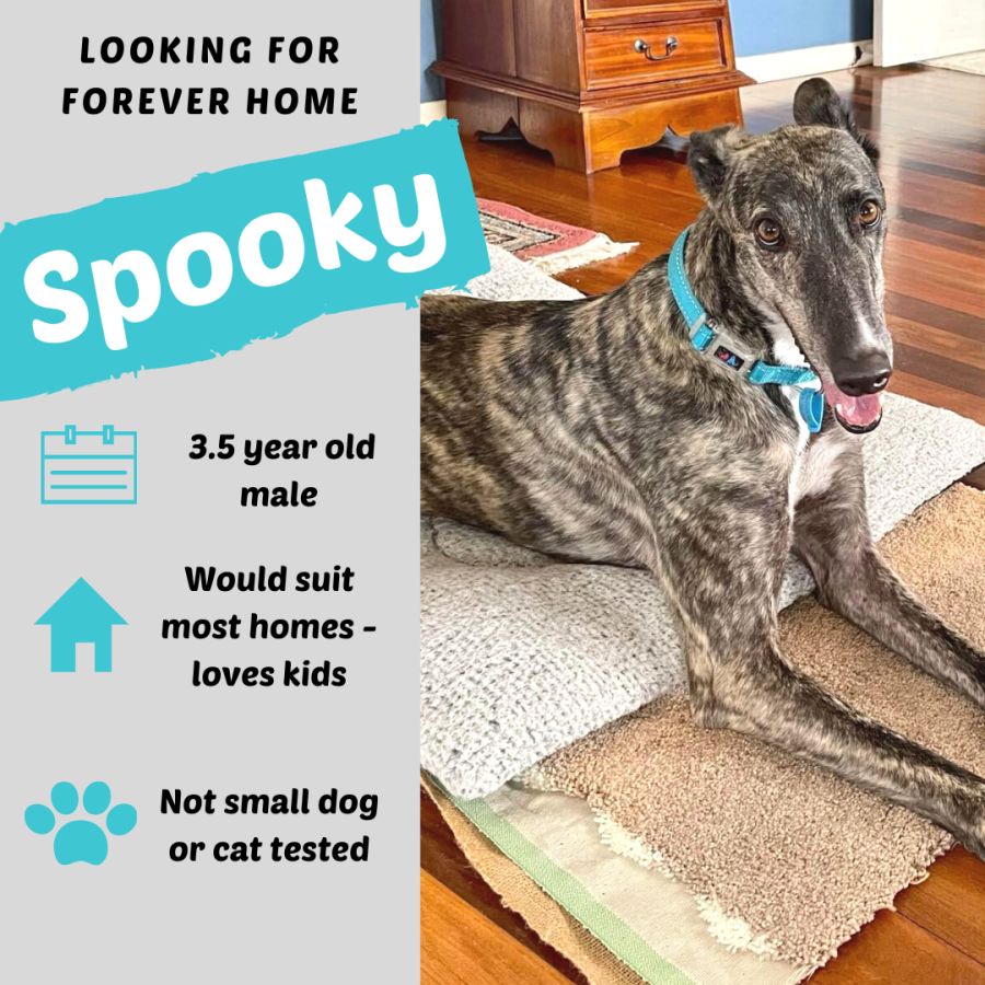 Spooky adores children, he loves their energy and eagerness to hang out with him! We see him thriving in a home with kids and a backyard to play in.