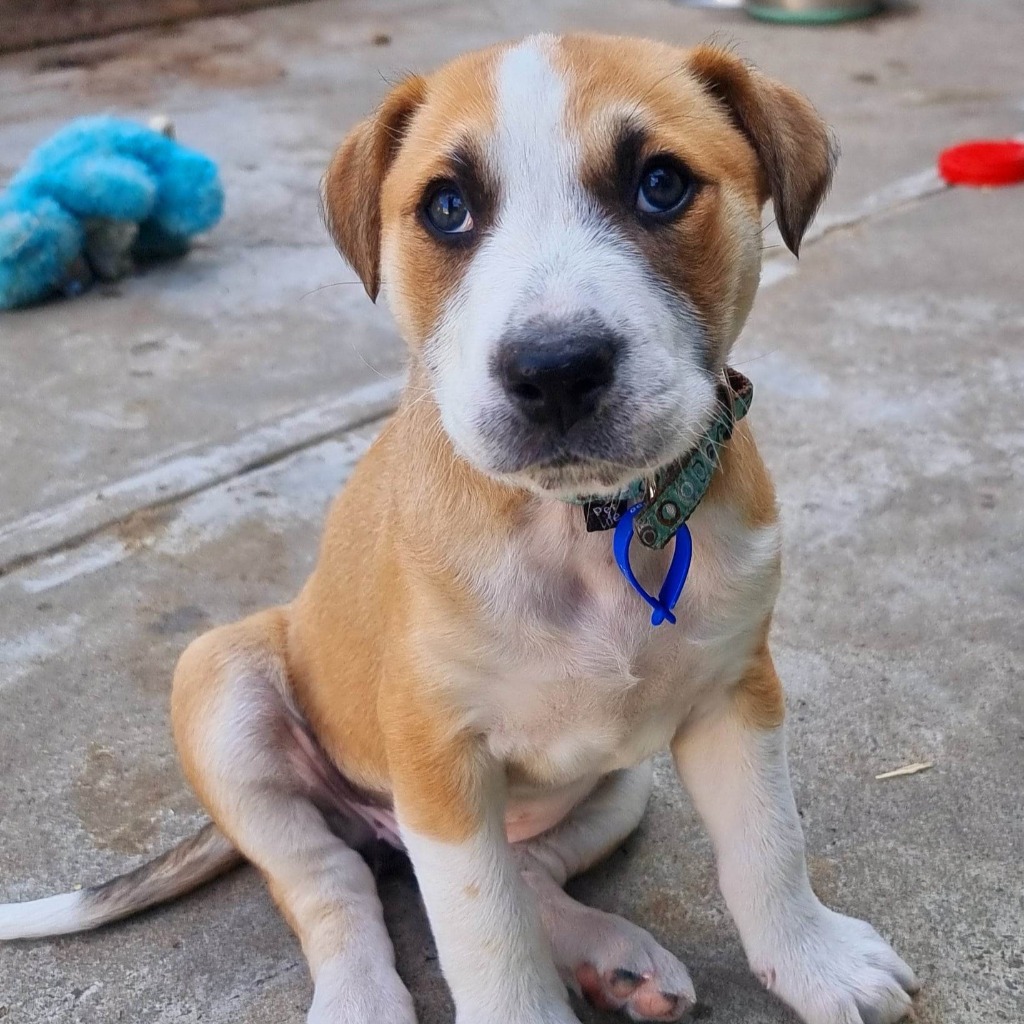Bonnie is an adorable, bouncy, friendly pup who will potentially grow into quite a large dog if her paws are anything to go by. This sweet girl is a typical puppy who will need oodles of love, training, playtime and interaction with her new family. We always recommend obedience classes for pups, as it gives them lots of opportunity to meet and interact with new puppy friends, learn doggy manners and bond with their owners.