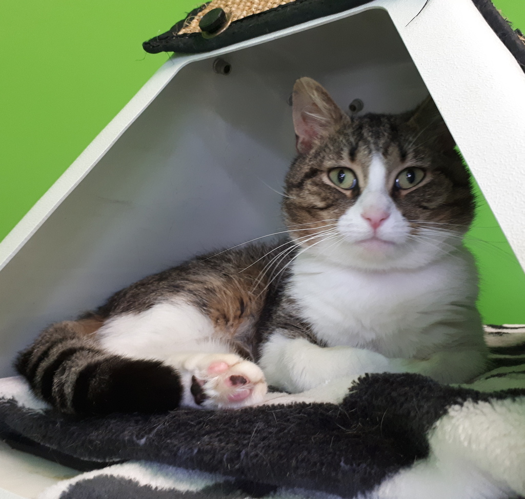 I'm a sweet boy with lots of love to give. I can be a bit shy to start with and may take a little while to settle into my new home but once I'm comfortable you will see what a friendly guy I am. I love to sleep up high so a large cat tower next to a window will keep me happy. I can be independent and like to spend my day napping so I don't mind if I have to be home alone while you work...as long as we can catch up in the evening while I enjoy a good chin rub!