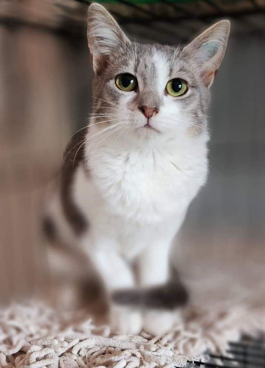 I was rescued by my previous foster carer, when she found me wandering around on the streets with my biological family. Unfortunately, my mummy is too scared of people to be saved yet, and my siblings all disappeared! When I moved in, Charlie was already there, and with his sweet nature and giant size, he very quickly made me feel at home! I love snuggling him and playing with him!