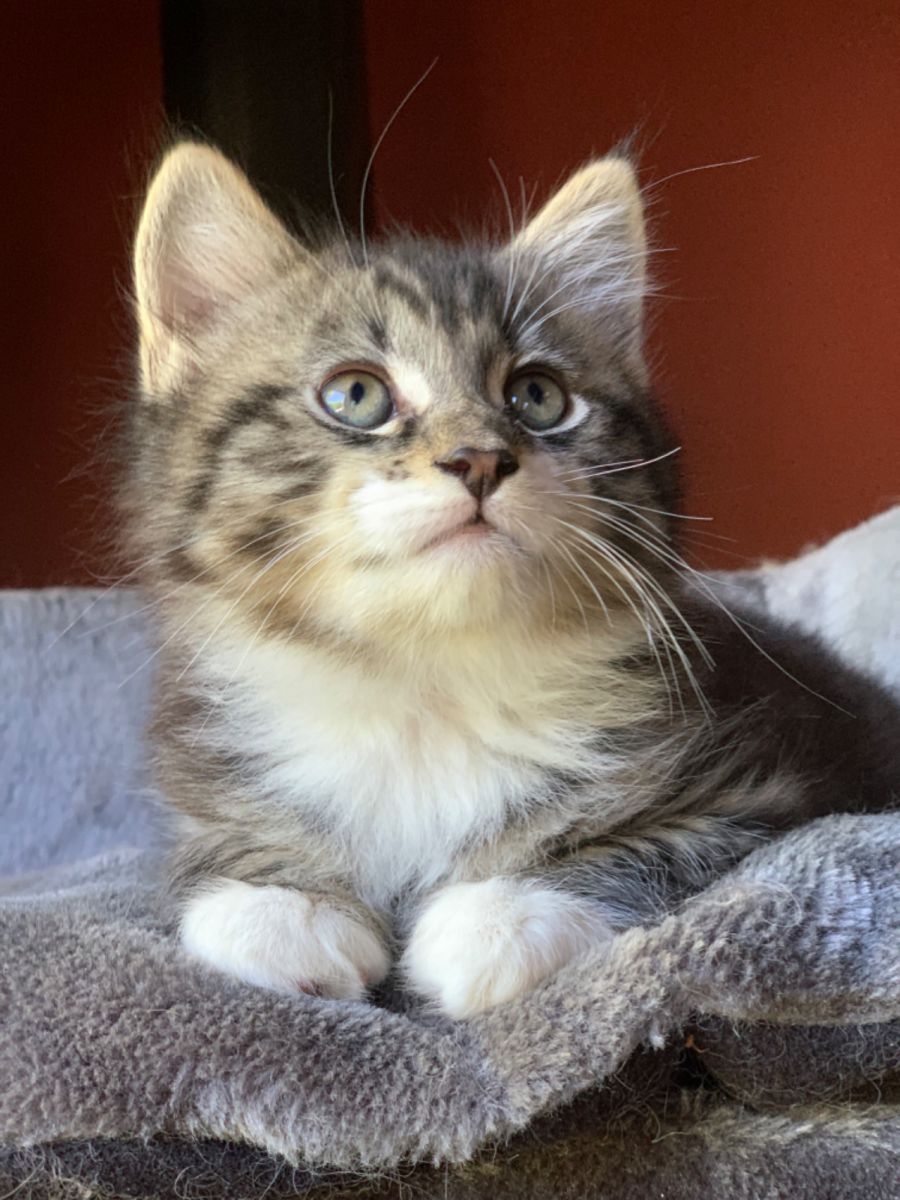 George is an easy going kitten who loves nothing more than to cuddle up with you or just chill out somewhere soaking up the sun