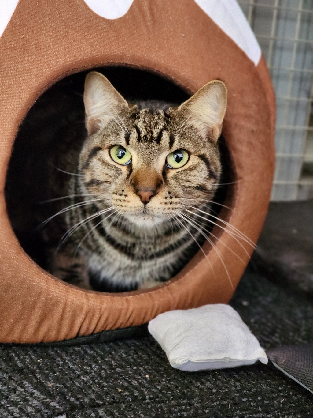 Tommy is our young, laid back man who says the best time to play, is at night! Tommy can be hard to see by day as he will find nooks and crannies to nap the day away in, but come night time he can be heard throwing his toys around and shuffling about the house.