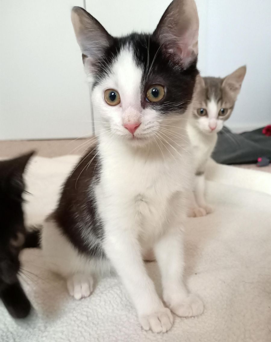 Edwina is a confident, energetic kitten! Edwina can be a little bit nosy; she always wants to see what you are doing and loves to sneak in an open cupboard door. Edwina loves company and greets her humans with lots of purrs. She is also a lap kitten and will seek you out for a snuggle. Edwina’s interests include exploring, doing zoomies and playing with her toys. Edwina would suit any family type.