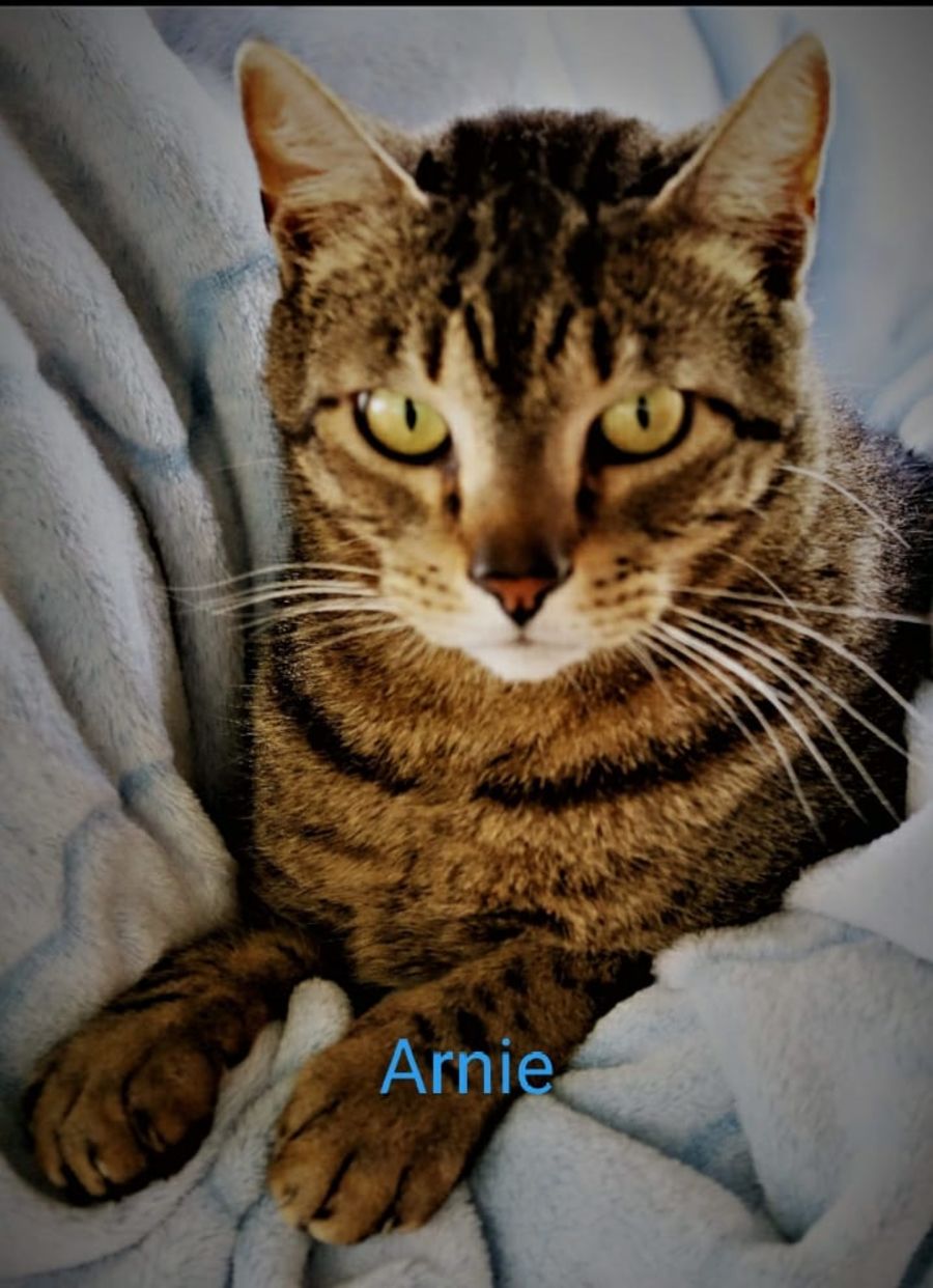 Arnie 6 years old, due to his age and world being turned upside down he will be shy and a little wary of new people but he is loving and affectionate once he gets to know you and can trust that he is safe.
