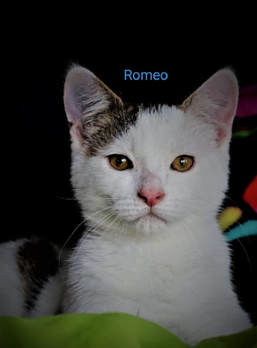 Romeo is 16 weeks old. He is an OMG super friendly super loving super adorable young man friendly with everyone he meets great with a kittens and cats in care and one of those dream babies we all are looking to adopt.
