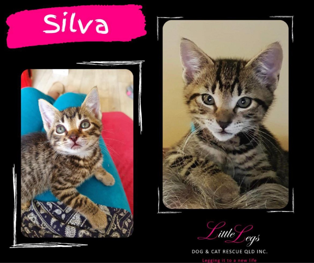 Hi! I'm Silva and I'm part of the Winx Saga litter of 5 Tiny Tigers 🙂 We were only 4 weeks old when we were caught by humans, dumped in a box and left at the pound. That was pretty scary I tell you! First, our mum went missing and we had to fend for ourselves and then everything we knew was gone as well. No wonder we were all shaken up and scared when we arrived at our foster mum's home, huddled together in a big tabby-coloured ball. Our big sister Farah tried to scare our new mum by growling and hissing at her when she touched us but she didn't fall for that and step by step she showed us we didn't have to be scared of her at all. And now.. 4 weeks later we cannot wait to receive our kisses & cuddles! The moment our door opens we run to her, flop on our backs for rubs and cuddles and 6-cylinder engines running! Oh man, life's so good now but will be so much better when you take me home and luuuv'me furrreverr. I'm playful, curious, super affectionate, and have the cutest nose (according to mum) and I will be lying on top of your belly or chest purring away once I get to know you. I have excellent toilet manners and eat anything you give me, I'm far from picky. Just one very important thing... please don't let me be all by myself all day, I would feel very lonely. We are very social animals and thrive when having a buddy to play, sleep and chat with.