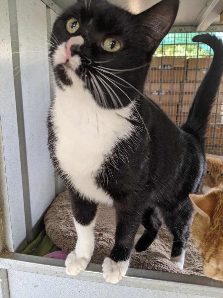 Tilty is a cute, quirky, charming kitten. She isn't big on cuddles but loves pats. She has lots of energy and just loves to play and jump and run.
