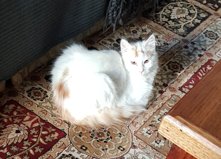 Eggflip is a shy but beautiful boy with a gorgeous white and ginger coat. He loves to play and run with typical kitten energy, likes to watch TV and is an easy going young man.